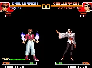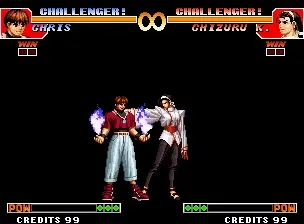 VS Chizuru:CD(击中时为Counter)最快取消暗黑大蛇薙 ↓↙←↙↓↘→+C,第一时间射日之炎 ↓↘→+A不可防御。