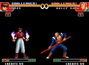 VS Andy、Chin、Chang、Shermie、Chris、Billy:远距离摘月之炎 →↓↘+A,第一时间射日之炎 ↓↘→+A不可防御。