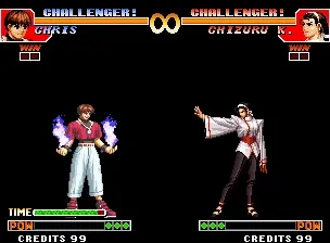 VS Chizuru:CD(击中时为Counter)最快取消暗黑大蛇薙 ↓↙←↙↓↘→+A,第一时间射日之炎 ↓↘→+C不可防御。