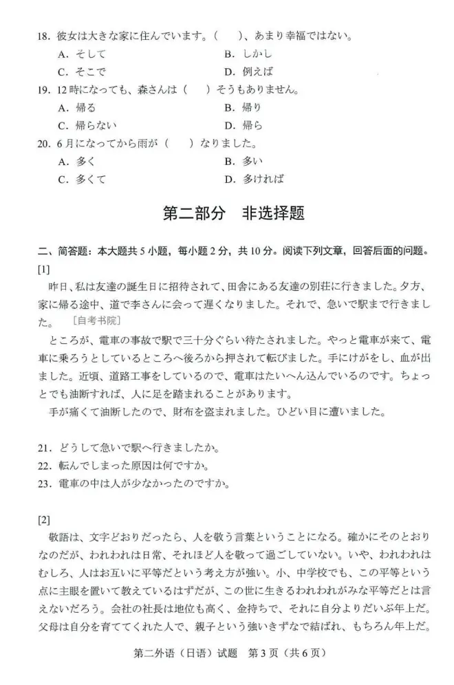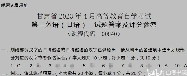 2023年4月甘肃自考《00840第二外语(日语)》真题和评分参考