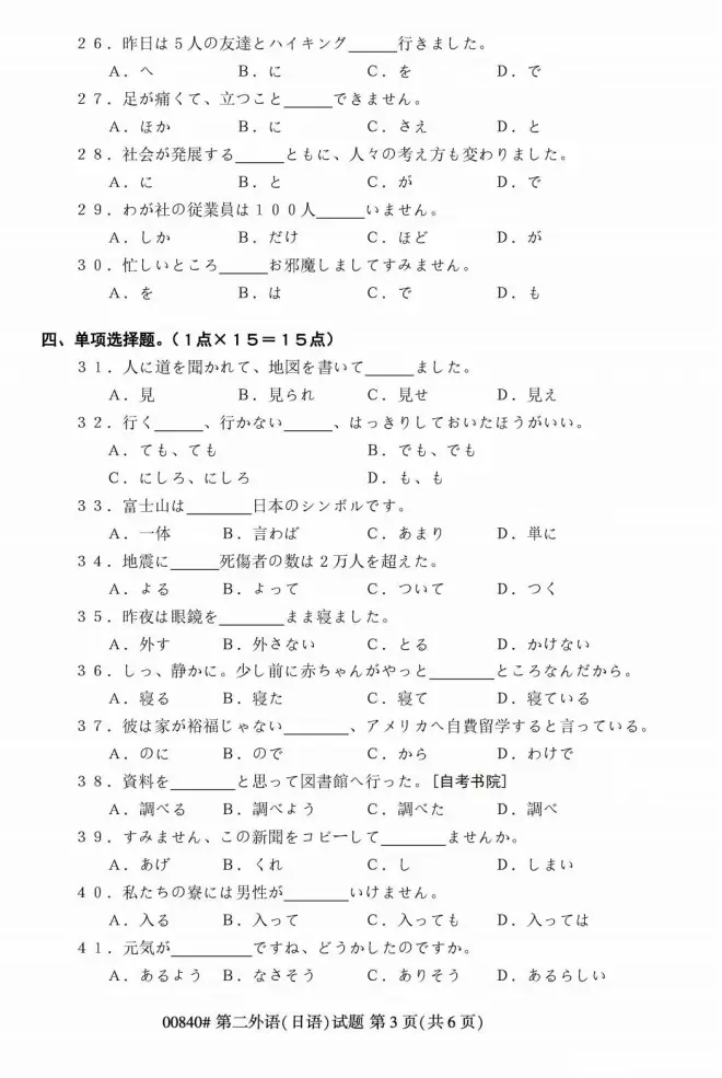 2023年4月浙江自考《00840第二外语(日语)》真题