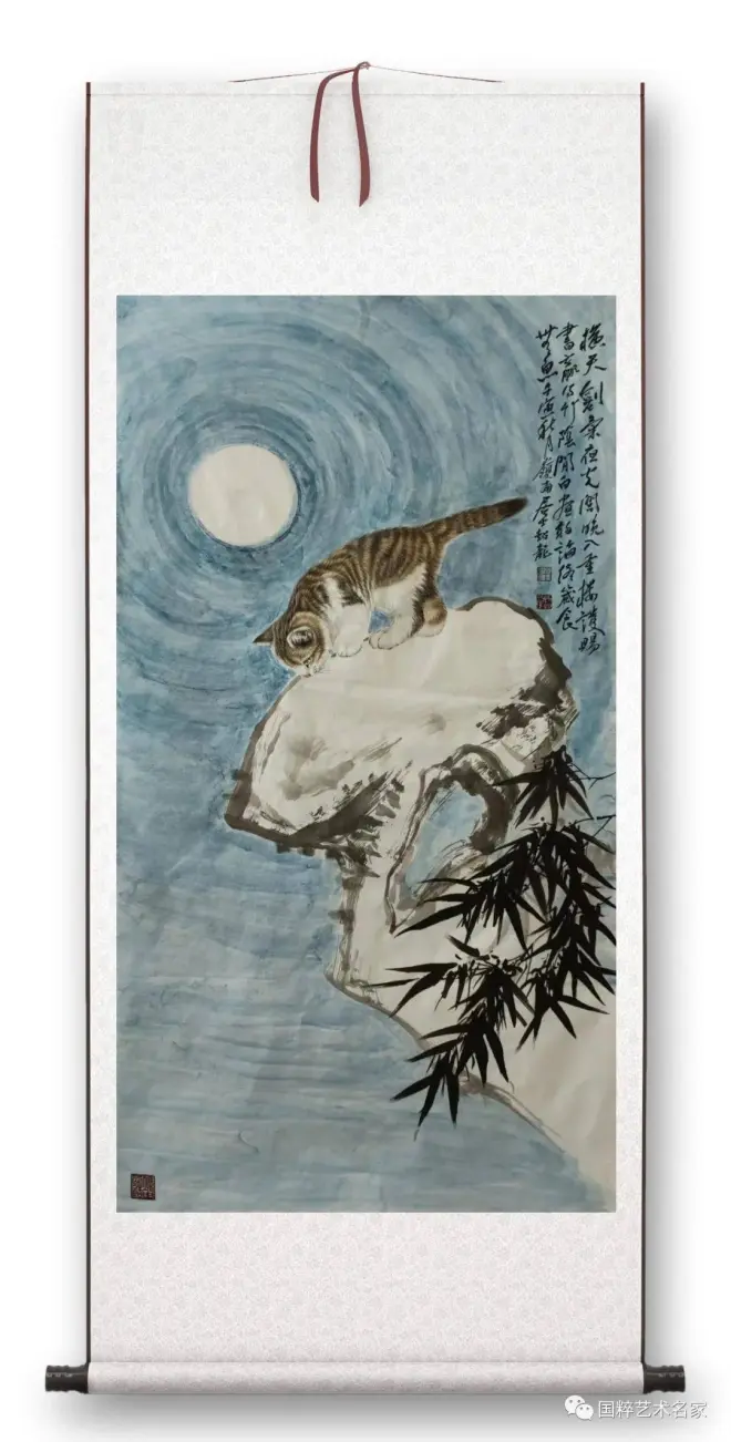 梁超龙先生的国画花鸟作品,墨色简洁,背景清疏,小猫它们姿态各不同,有的静卧,有的匍匐,安闲又慵懒,近处的一只花猫正在仰头观望着飞过的蝴蝶,可爱灵动,不禁让人心生喜爱之情。作者将每只猫的特点都展现出来就实属不易,几分聪敏,几分稚气,表达出了小猫的主要特征,而且猫同“耄”,蝶同“耋”,在中国画中,蝶图也是一个固定的主题,寓意着以谐音取“耄耋”之寿的美好含义,欣赏,装饰,馈赠,收藏皆是佳选。