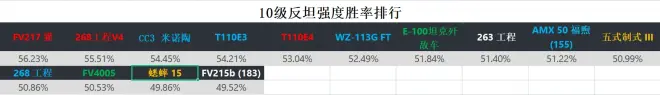 坦克世界闪击战 十级车强度/胜率排行
