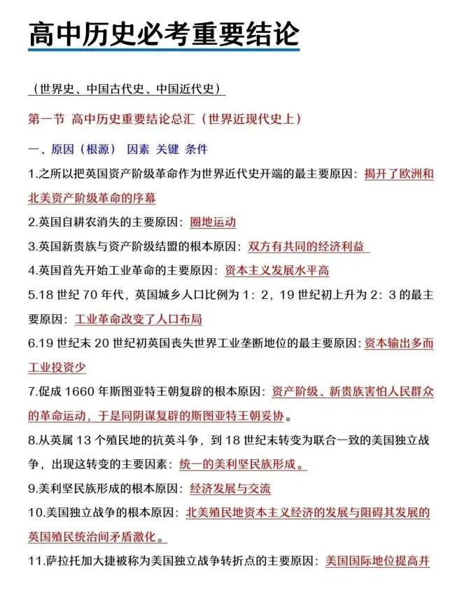 ✅今天给大家分享《高中历史重要结论总汇》,其中包括了高中三年所学的所有知识点结论,这些重要的结论往往是考试中出现频率最高的考点。