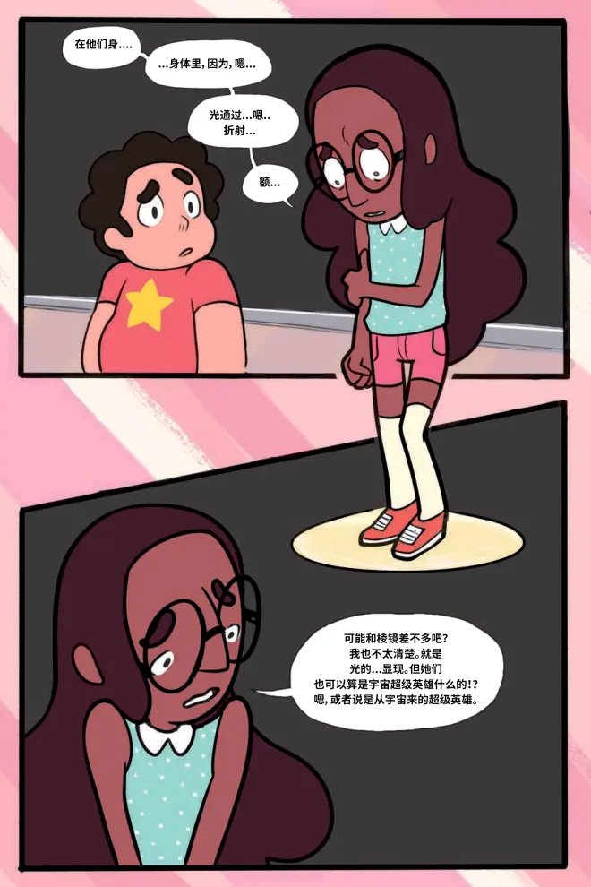 原作:Kaboom! 图源:网络 翻译&嵌字:舒歌 校对:纛 本漫画由SU官漫组汉化,仅供爱好者交流使用,版权仍归原作者所有,转载敬请注明 无意中进入Connie的学校,成为了Steven学校生涯的开始……