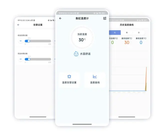 支持远程监控、智能AI分析:可实时远程监测水温情况,支持记录并查询历史水温数据,通过数据智能统计与分析,实现高低温自动报警功能,及时提醒用户进行处理。让用户无论身处何处,都可以通过远程监测鱼缸中的水温,及时掌握变化情况,更好地照顾鱼儿健康和生长。