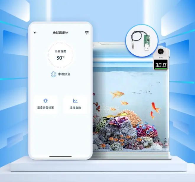 为了保证鱼缸中的水温适宜,通常需要配置专用的温度计。鱼缸USB温度计是一款常见的温度判断和测量工具,能够帮助人们观察鱼缸水温的变化,并根据数据进行相应的调整,如调整水温,更改换水和喂食频率等,有助于观赏鱼的生长、繁殖,也能够预防疾病的发生。随着消费需求的升级,鱼缸等温度传感产品开始融合物联网等新一代信息技术,不仅可以测量水温,还具备远程监控、历史温度查看以及智能报警等功能,为人们提供了更加便利的选择。