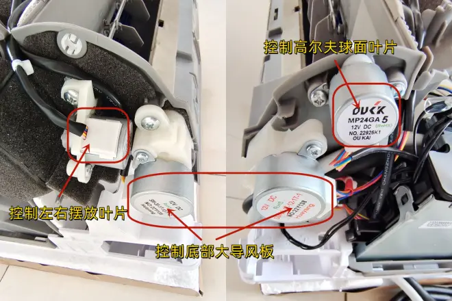 酷省电空调内机使用了四个步进电机,这是它可以做到一键防直吹的关键所在。