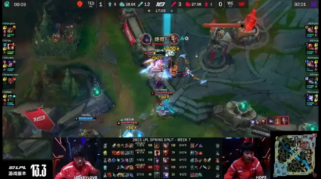 第一把WE玩脏东西,亮弱爆,第二把TES虐高地合理