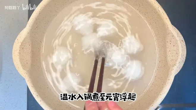 煮熟的元宵捞起后过凉水,这样据说会更Q弹。将元宵裹一层蛋液,再裹上之前做的面包糠,全部裹上面包糠之后就可以开始扎孔