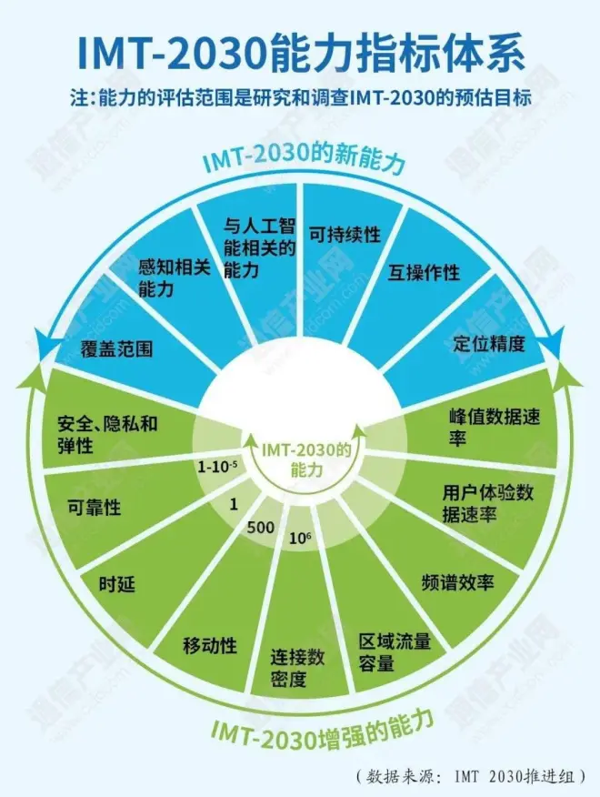 6G的15个能力指标是: