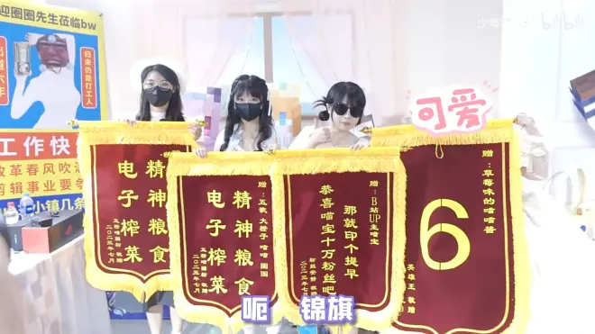 这四面锦旗和最左边的卡慕好好笑啊哈哈哈哈哈哈哈哈哈