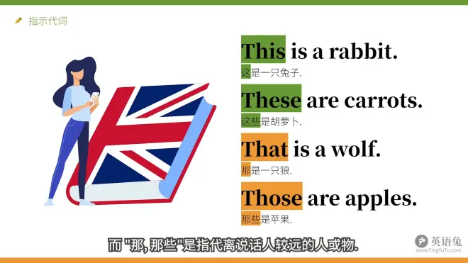 上图话语补充:也是代词的一种,叫“指示代词”,比如(下图举例)