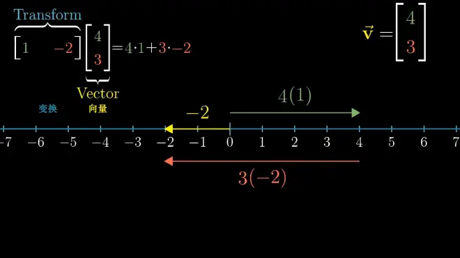 注:该线性变换的结果为向量,即该线性变换为“非单射”(非函数),任意升维线性变换("raised" rank)都是“非单射”形式的(这里把Matrix比作函数可能有些误导),如对一维向量使用“升维”线性变换将会得到一个平面