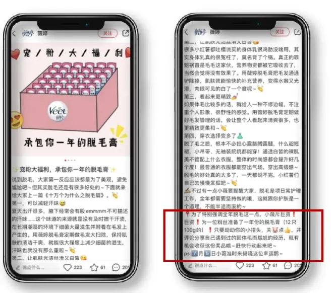 例如薇婷以“承包你一年的脱毛膏”利益点作为活动主题,从而吸引用户,提升对品牌的好感度。