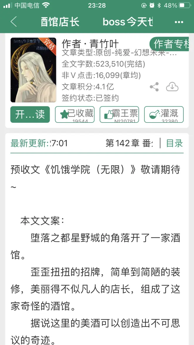纯爱推文:《boss今天也是平平无奇酒馆店长》满级大佬末世星际未来剧情文苏爽文