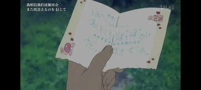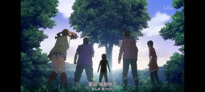 无论是玩宠物小精灵,让仁太重新回去上学,希望小伙伴们重归于好,到河边捉鲤鱼,还是最后的花火,芽衣子都没能够如他们所愿最终成佛,大家之间脆弱的友好终于崩溃了,他们希望芽衣子走,其实是因为他们芽衣子对于他们而言都是难言的心结,安鸣喜欢仁太,联合雪集一起当早已听喜欢雪集的鹤子通风报信的面码的面套仁太的真心话,仁太逃走,雪集表白面码耽误了时间,面码追仁太却不小心溺水,波波目睹溺水过程却无能为力......大家都认为自己对于芽衣子的死有着不可推卸的责任,他们认为芽衣子并没有原谅他们自己,他们嫉妒仁太能够看得到芽衣子,每个人都有自己的私心,都有自己的期盼。