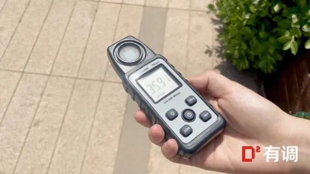 - 用紫外线检测仪测试室外的紫外线强度。为了实验的效果,我们几乎都是在紫外线强度值3000μw+的时候出来,为了评测也是拼了😭