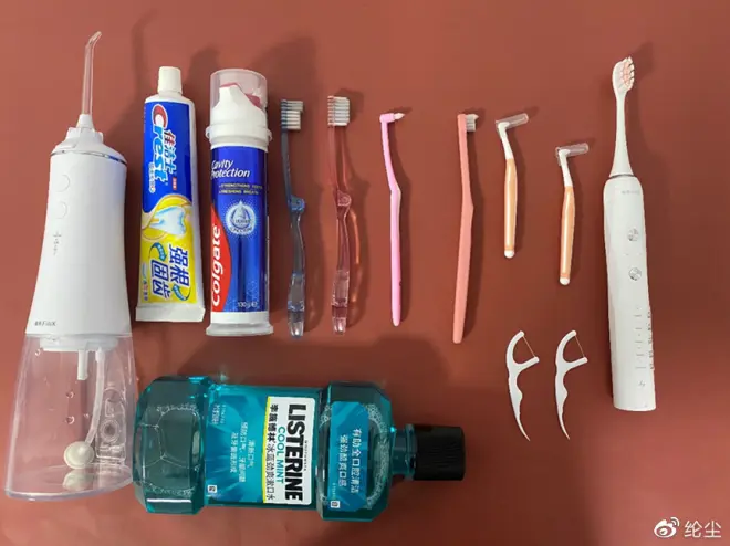 说完了生活中要注意的一些口腔护理知识,下面我来分享牙齿矫正正畸期间的口腔护理好物,专业牙医建议我使用电动牙刷、冲牙器,还分享了小束头刷、凹凸刷、牙线、含氟牙膏、正畸蜡等护理好物给我!下图是我使用过的工具: