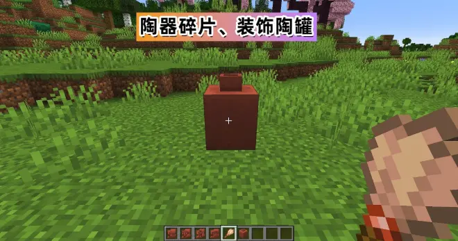 ②装饰陶罐和陶器碎片;陶罐的合成材料包括了红砖和陶器碎片两种,区别就在于用陶器碎片合成的陶罐会有图案,红砖合成则无。两种材料可以混合在一起合成,区别就是陶器碎片的一面有图案,而红砖的那一面无图案。