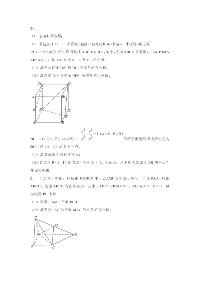 » 重庆市重点中学校2021-2022学年高二上学期期中考试数学试题(含答案)
