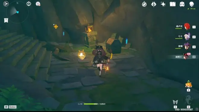 继续前进后来到新的机关点,同样需要两枚魂火来解锁大门,但场地中只有一枚魂火,随着路线走过一轮后发现又回到了起点,几番尝试下来我们似乎遭遇了“鬼打墙”,胡桃便会给予我们提示。