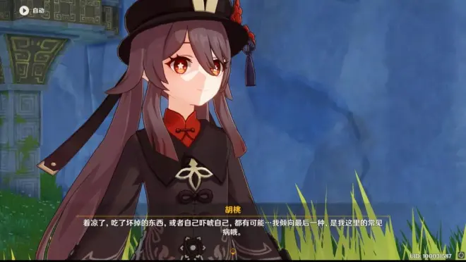 随着一番攀谈后,我们了解到胡桃是因为最近无妄坡有灵异事件发生的传言,便来到无妄坡进行一场葬仪来平息影响,同时通过对话我们也发现了胡桃是一个十分古灵精怪的人。