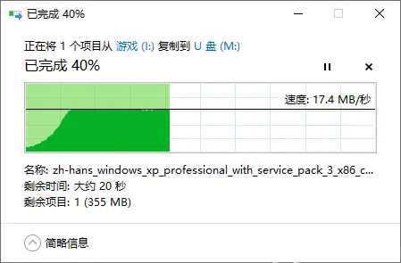 测试文件:WinXP专业版32位SP3原版镜像,约601MB