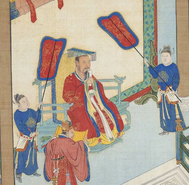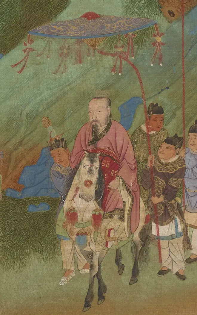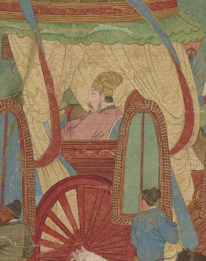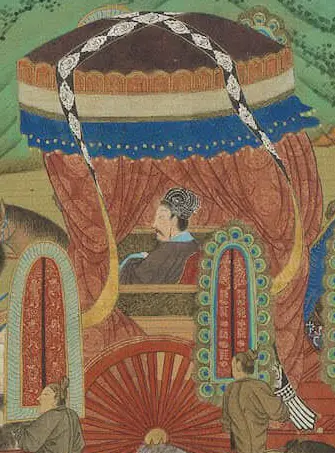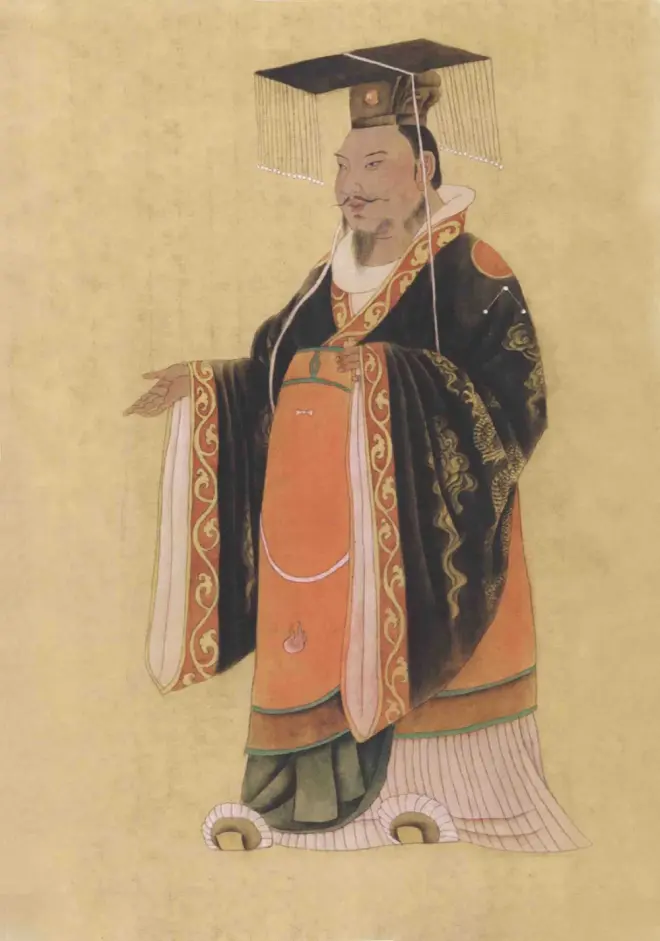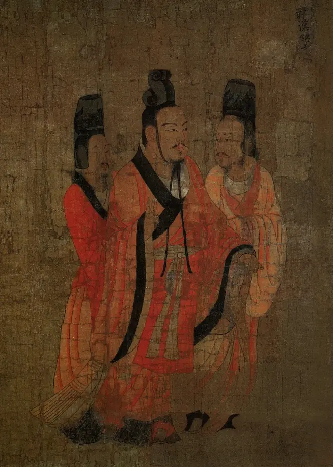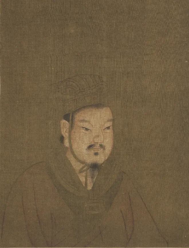 能看出这幅画像的原型是阎立本历代帝王图中的晋武帝,姿势体态都很像。