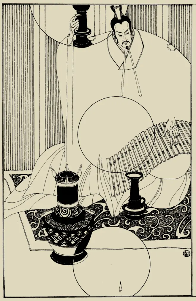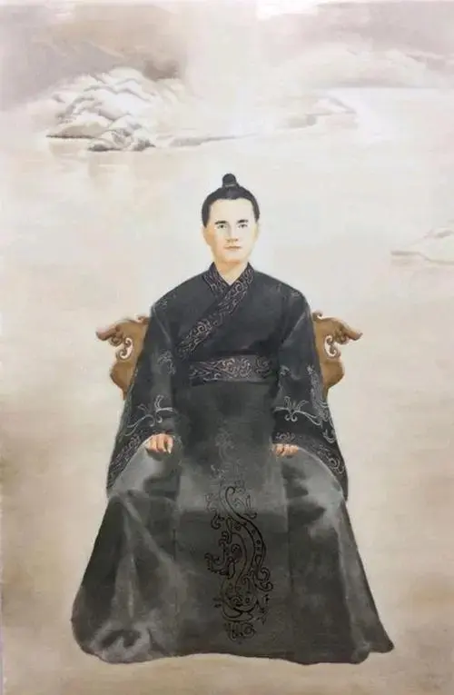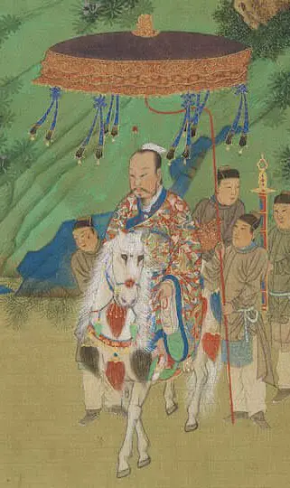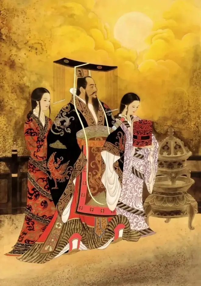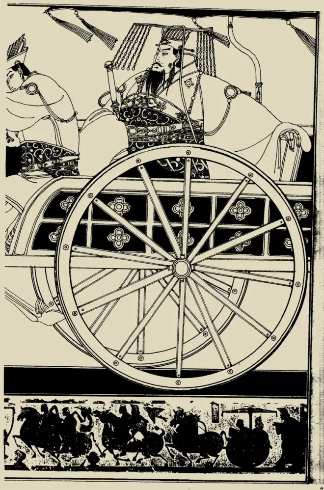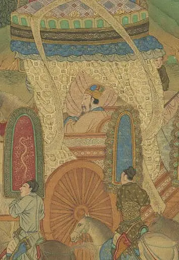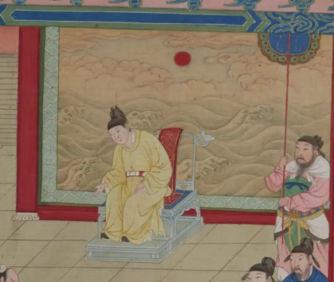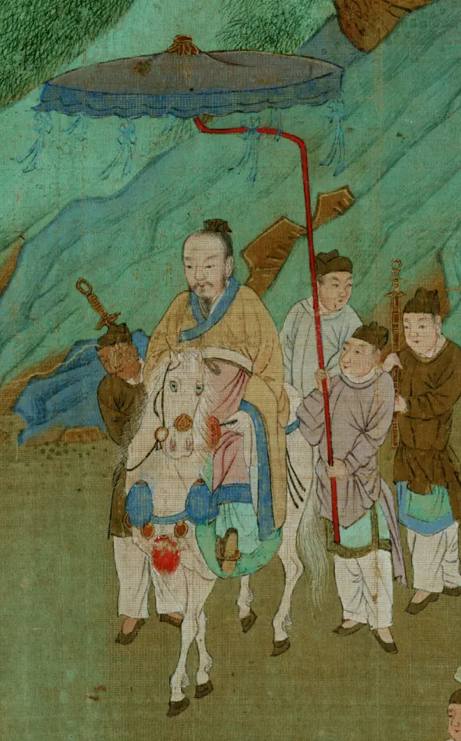 能看出这幅画像的原型是阎立本历代帝王图中的晋武帝,姿势体态都很像。
