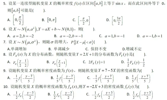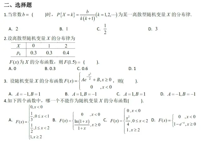 » 《概率论与数理统计》第二章期末选择题之填空题