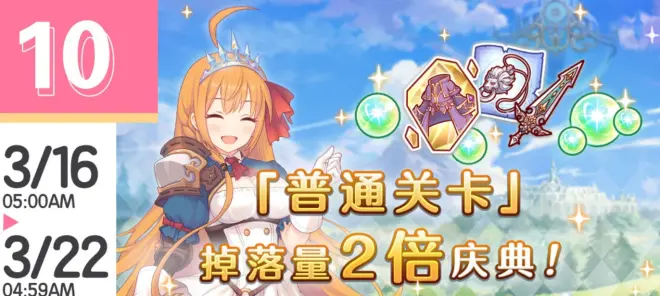 3月16日05:00起,将开启「普通关卡」掉落量2倍庆典。