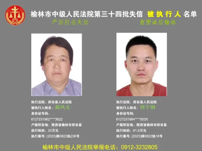 榆林发布第34批失信被执行人“黑名单”