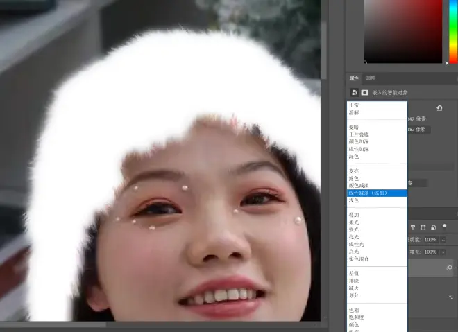 8.点击“颜色查找”的蒙版,选择画笔工具,画笔类型选择“柔边圆”,不透明度设置100,流量设置10,在画面上涂抹。前景色为黑色时是显示亮部,为白色时是擦除亮部。