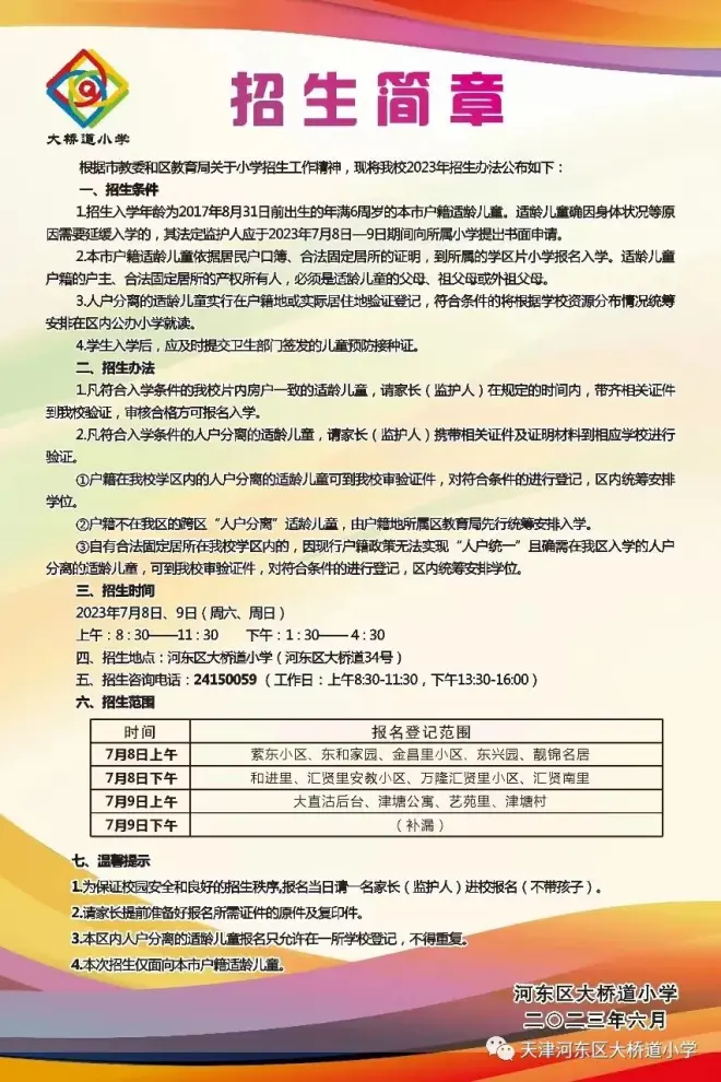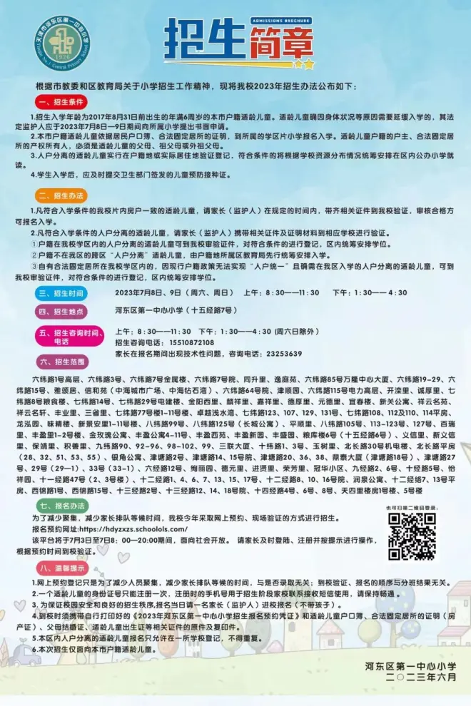 1.本片符合招生条件的适龄儿童家长线上预约。一年级报名7月1日上午8:00预约登录系统开启,7月7日下午16:00截止。