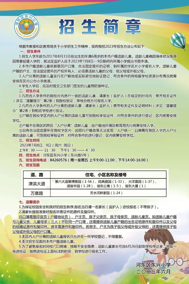 1.2023年入学的适龄儿童应年满6周岁(2017年8月31日前出生)。