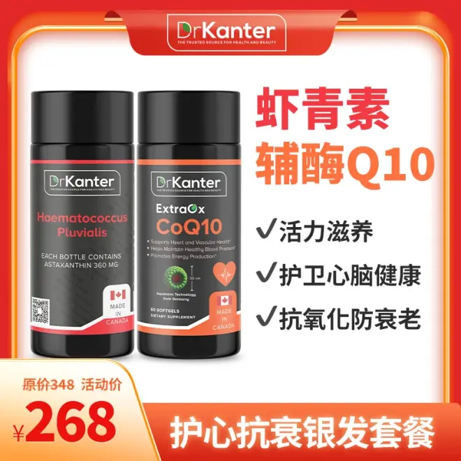虾青素+辅酶Q10:随着年龄的增长,人体辅酶Q10的水平会逐渐下降,导致细胞老化、机体功能下降。虾青素和辅酶Q10能够协同作用,提高细胞活性,增强免疫力,增强心脏功能,改善心肌缺血、心力衰竭和心律失常。