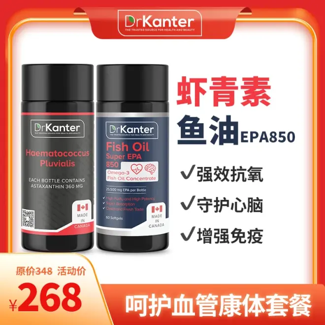 虾青素+鱼油:是一对黄金搭档。两者协同作用能增强心血管健康,降低血脂、血压和血液粘度,预防动脉硬化、心梗和中风。