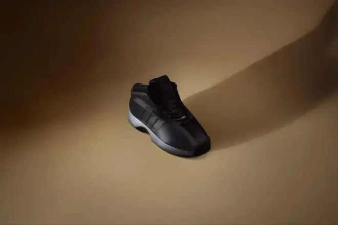 太空黑色是Crazy 1的元年配色之一,今年终于复刻,高雅的哑光黑色鞋面搭配亮黑橡胶鞋底配色,还是经典的味道;