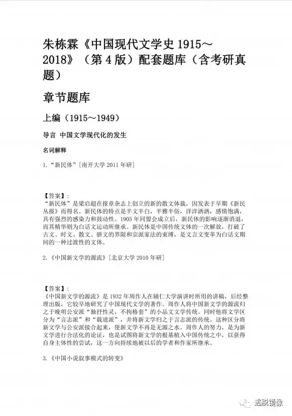 朱栋霖《中国现代文学史1915-2018》第四4版教材含复习笔记+课件+配套题库 PDF电子版