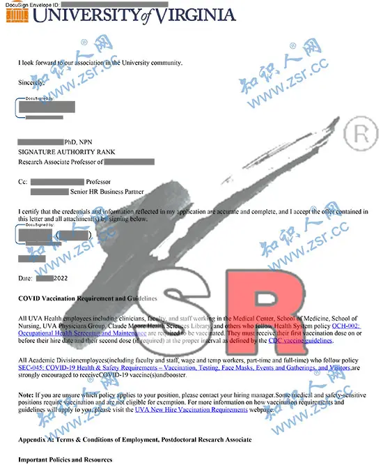 最终我们抓住了机会,弗吉尼亚大学眼科高级视觉研究中心某位教授所从事的课题与K医生的方向非常契合,通过面试,对方倾向于接收K医生,头衔定义为“Post-Doctoral Research Associate”(博士后研究助理),年薪为47500美元。