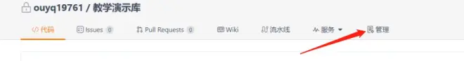 1)在仓库首页上方的导航中点击最后一个菜单“管理”