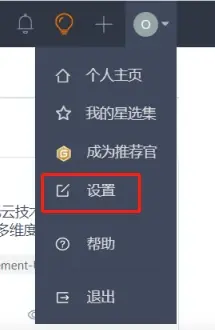 1)在Gitee右侧上方最后一个图标上悬浮,在展开的菜单中点击“设置”