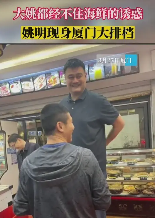 姚明现身厦门吃大排档,满脸笑容状态好,为刘玉栋当迎宾太逗笑