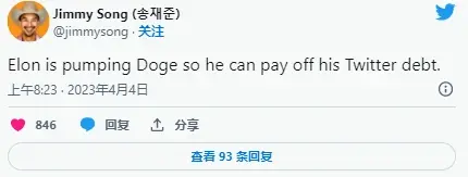 最近,流行的比特币极简主义者 Jimmy Song 也声称马斯克可能会抬高 DOGE 的价格以出售他的股份。