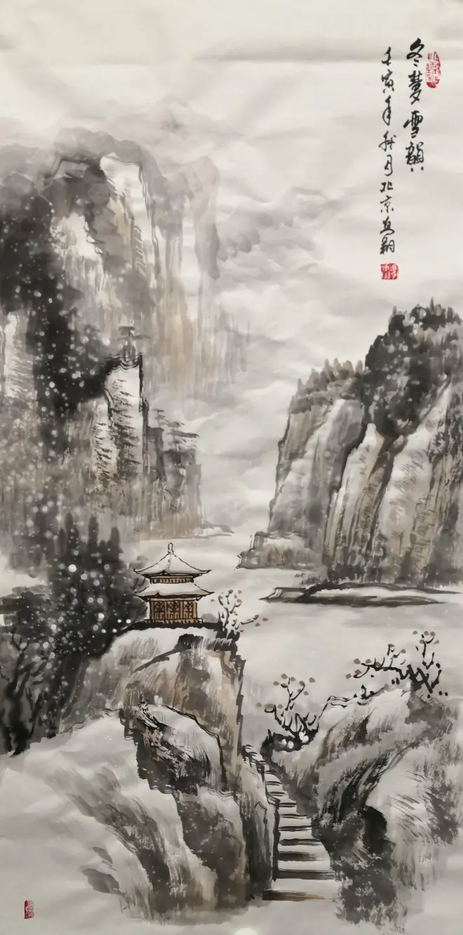 冯高翔,字云鹤,一九六七年生于河南省焦作市,毕业于河大美术系。参加过中国美术家协会河南省分会主办的“中国画高级研讨班”。在当地博物馆任职,长期从事国画、山水、人物、花鸟和大型国画创作并出版大红袍,2022年春拍《听泉品茗图》以七十四万七千五百元落槌。