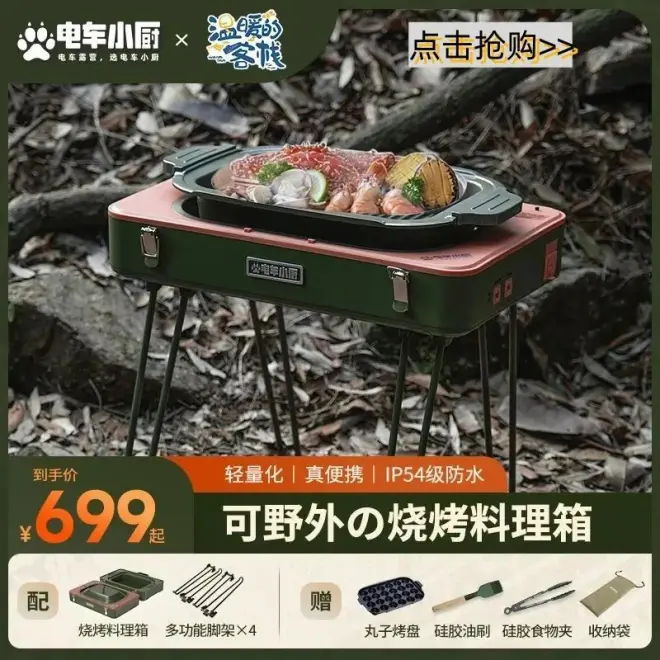 每次出去露营的时候看到隔壁的家庭烤个肉烟熏燎火,时不时还被保安驱赶,一身狼狈。
