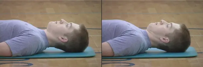 仰卧,然后将下巴向胸骨靠拢,将头稍微抬离地面一点点即可(大约可以将一张纸抽出来面的高度),保持5秒钟,自然呼吸。随后将头放回垫子上,放松 2 秒钟,每组4-6次,重复2-3组