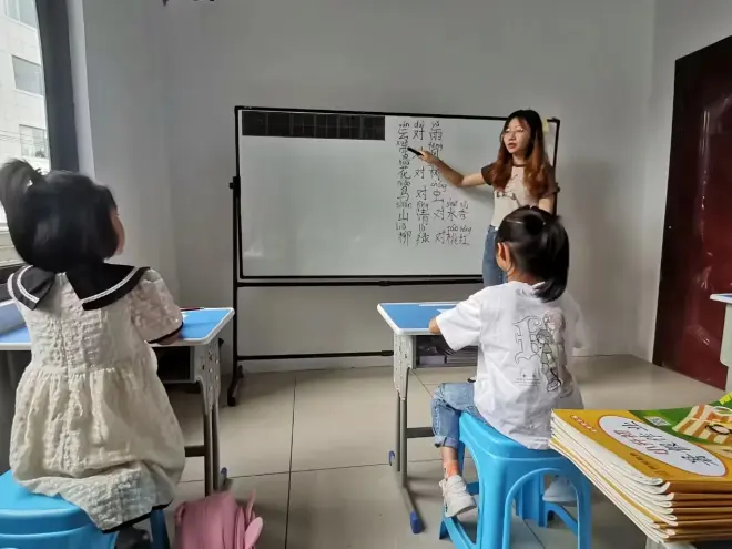 在一年级的语文课堂上,同学们积极跟着志愿者老师学习写拼音、写汉字、读短篇诗歌。午饭过后有的同学继续回到教室学习,有的同学和其他同学在玩耍,还有的同学回到教室准备午睡。此时部分志愿者在讨论教案设计,其中一位志愿者老师提出,老师们应寻找课堂关键突破口,设计教学提问,开拓学生的思维,上课过程中安排课堂活动,给学生一个自由发挥空间,要关注学生学习水平,更要关注他们在教学活动中表现出来的情感与态度,帮助学生认识自我,建立信心。另一个志愿者老师谈论到,课堂不仅是教授学生知识与能力的地方,更多时候是提供学生静心学习的环境。作为他们的老师,应该熟知教材,与学生建立沟通的桥梁,全方面服务于学生。志愿者之间互相交谈教学方法、体验与感悟,为梓玮志愿服务队的社会实践生活更添色彩。
