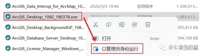 2.选中“ArcGIS_Desktop_1082_180378.exe”右键以管理员身份运行